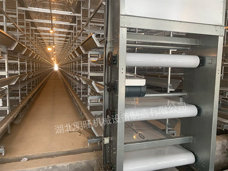 三層傳送帶式清糞機是專門為H型、直列式的肉雞養(yǎng)殖場研發(fā)的設備,清糞帶帶體寬度可以定做,厚度1.2mm,原料為PU.PE板,選用超聲波斜口焊接,配0.75KW電機。每層雞籠下面裝備1層輸送帶,雞糞整理完全。